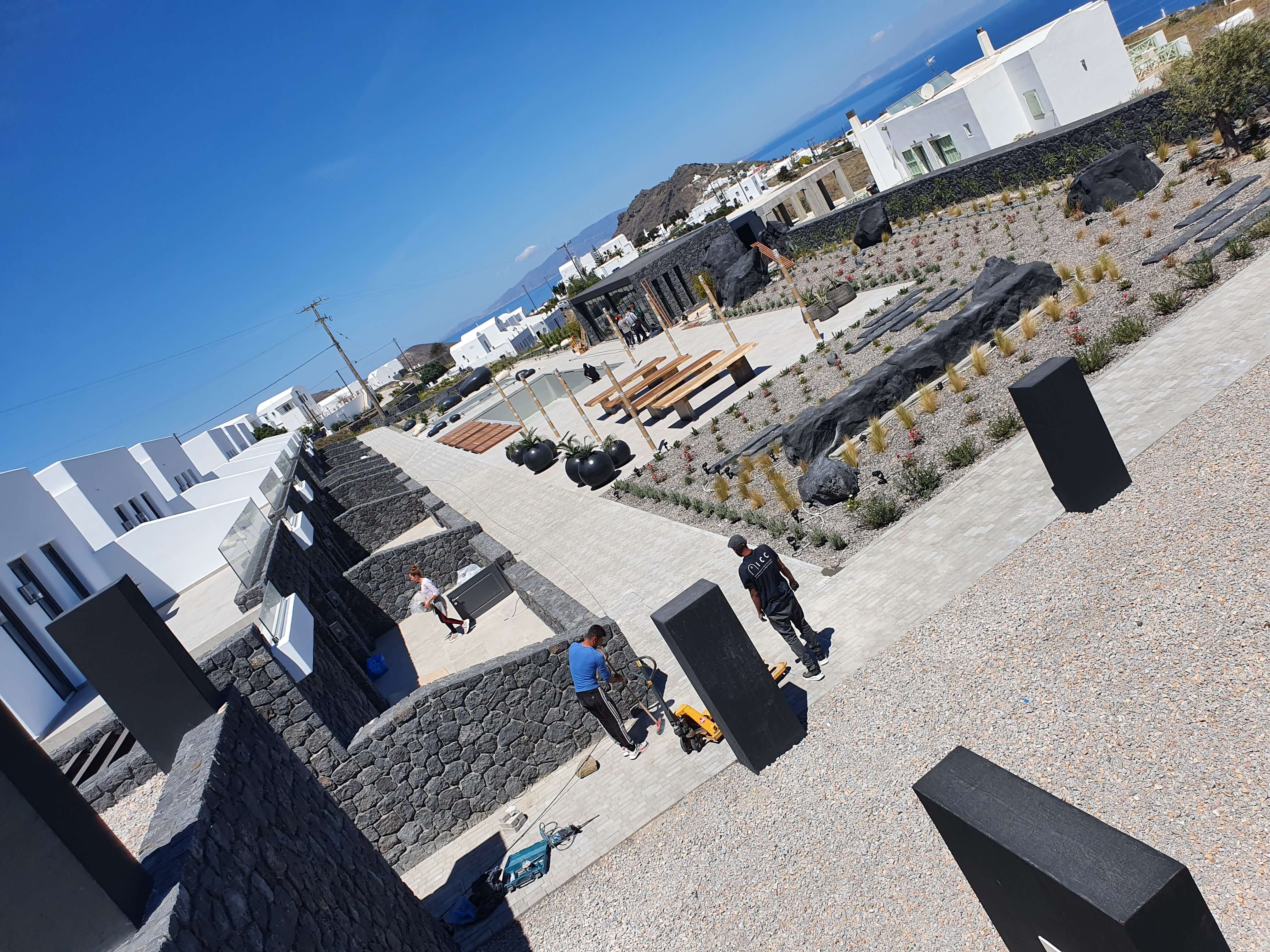 Κατασκευή ξενοδοχειακού συγκροτήματος με προδιαγραφές 5 Αστέρων στο Ημεροβίγλι Σαντορίνης. Μεγάλες οι απαιτήσεις κατασκευής σε μικρό χρονικό διάστημα με εξαιρετικό ποιοτικό και λειτουργικό αποτέλεσμα, που λαμβάνει κορυφαία σχόλια.