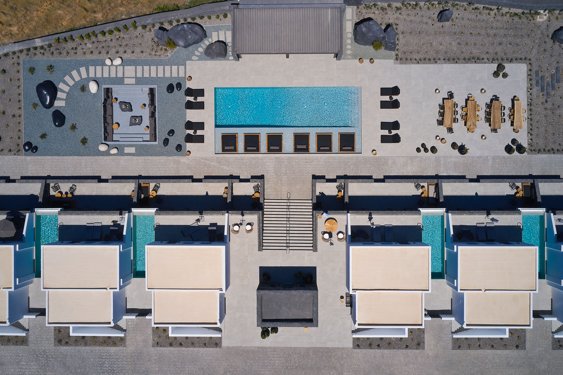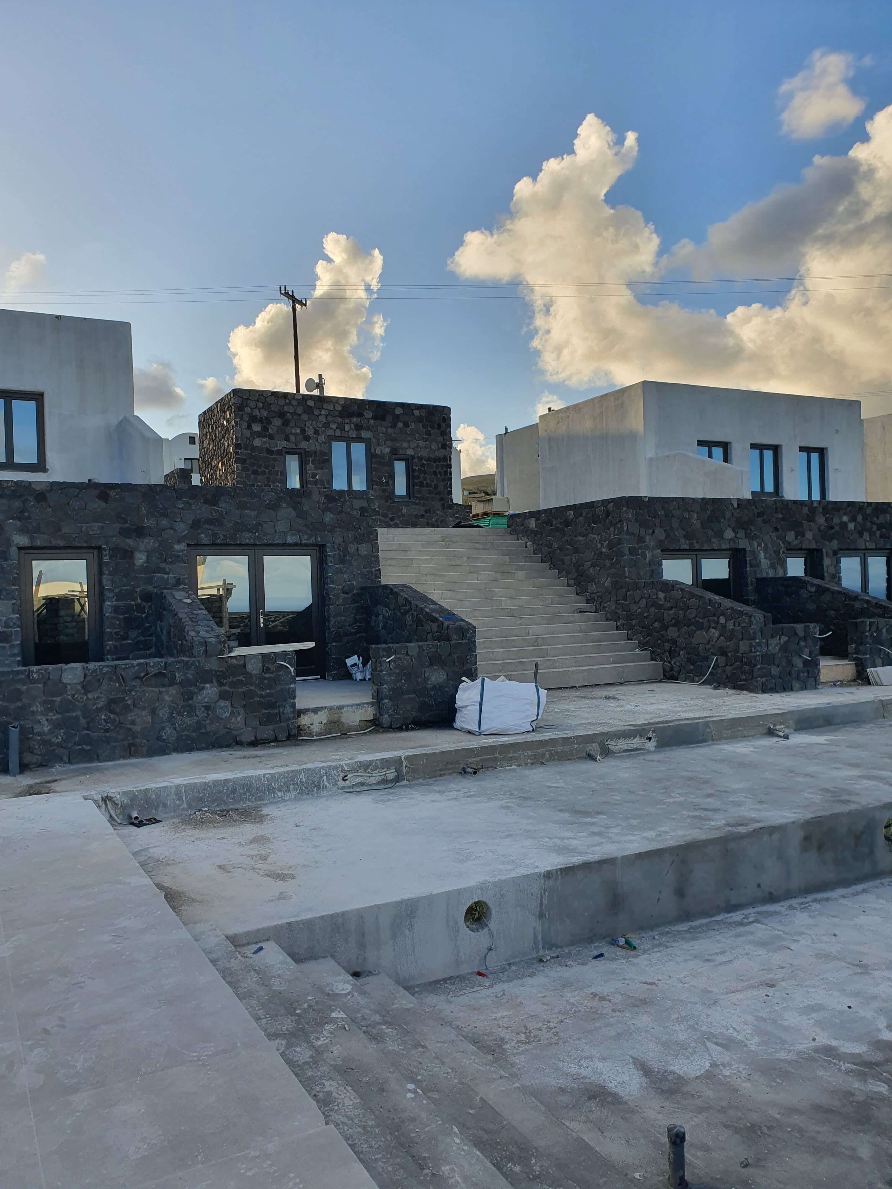 Κατασκευή ξενοδοχειακού συγκροτήματος με προδιαγραφές 5 Αστέρων στο Ημεροβίγλι Σαντορίνης. Μεγάλες οι απαιτήσεις κατασκευής σε μικρό χρονικό διάστημα με εξαιρετικό ποιοτικό και λειτουργικό αποτέλεσμα, που λαμβάνει κορυφαία σχόλια.